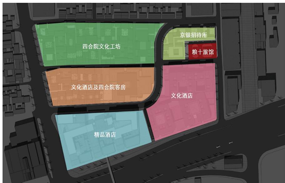 H地塊總體定位為文化旅游服務(wù)保障區(qū),以大柵欄地域的歷史、文化、旅游為基礎(chǔ),依托大柵欄地區(qū)豐富的旅游資源,建立多層次酒店群,開發(fā)中高級(jí)特色酒店。