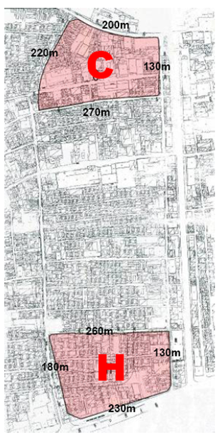 項(xiàng)目由C、H兩個(gè)地塊組成,東至珠寶市糧食店街,西至煤市街,項(xiàng)目通過一二級(jí)聯(lián)動(dòng)方式實(shí)施改造。