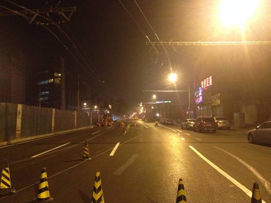 2014年1月15日凌晨兩點,隨著市電車公司四輛工程車升降臺緩緩落下,太平街二期市政道路改擴建工程電車線路勝利合龍,同時,新的交通標線也施劃完畢。三點,現場清理完成,新建道路全面放行。繼2013年12月18日道路工程全部完工,道路全線通車這一節點目標于本日順利實現。下一步,廣安基礎公司會同陶然亭、天橋辦事處及相關部門將對道路兩側環境進行整治,繼續推進中芭以北居民拆遷、騰退工作,加強對中芭段這一擁堵節點的交通疏導。