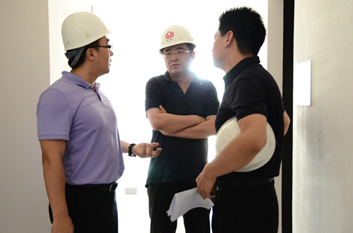 張總一行9人在燕廣公司副總經(jīng)理孫樹(shù)、工程總監(jiān)李強(qiáng)、工程管理部經(jīng)理張式鵬等人的陪同下,參觀了南苑項(xiàng)目的樣板間并就交房的標(biāo)準(zhǔn)進(jìn)行了詳細(xì)的詢問(wèn)。隨后,副總孫樹(shù)向控股領(lǐng)導(dǎo)匯報(bào)了南苑項(xiàng)目的工程進(jìn)展情況;同時(shí),銷(xiāo)售部副經(jīng)理李潔介紹了現(xiàn)階段項(xiàng)目的市場(chǎng)定價(jià)相關(guān)情況。