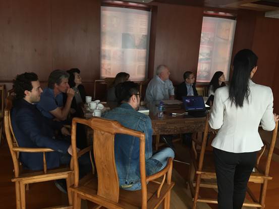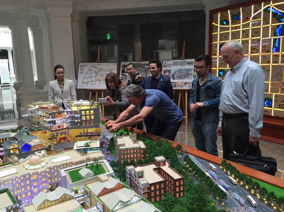 廣安置業(yè)營(yíng)銷(xiāo)總監(jiān)沈紅梅一行向來(lái)訪人員介紹了項(xiàng)目的定位與特點(diǎn),項(xiàng)目理念、設(shè)計(jì)細(xì)節(jié)以及富有民國(guó)特色的建筑風(fēng)格,得到了好萊塢電影大師的一致好評(píng),紛紛饒有興趣的詢(xún)問(wèn)相關(guān)信息、拍照留用。Jonathan Bollier表示北京坊項(xiàng)目令人驚艷,Phil Lengyel甚至開(kāi)玩笑的表示希望能在北京坊擁有一間自己的辦公室。