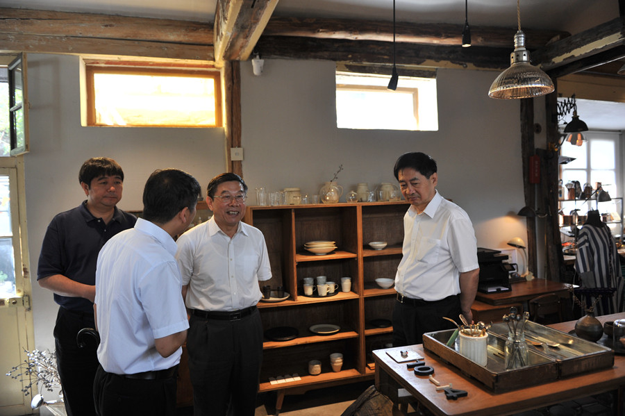 6月19日上午,市人大主任杜德印帶領市人大常委會歷史文化名城保護條例執法檢查組一行,實地視察楊梅竹斜街保護修繕試點項目。檢查組首先調研了鈴木食堂和模范書局等節點。隨后在北京坊勸業場聽取了楊梅竹斜街保護修繕試點項目匯報,全面了解項目概況、實施模式和在人口疏解、市政基礎設施完善、環境提升、建筑保護修繕、產業提升方面的成效。杜德印同志對大柵欄文保區保護建設的工作成果表示肯定,并要求西城區政府按照習總書記講話和首都四個中心定位,重視風貌保護、重視改善民生、重視文化挖掘,同時進一步研究推進歷史風貌保護方式方法,做好歷史文化名城的保護工作。