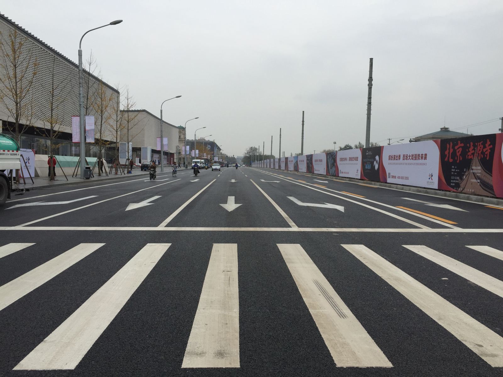 南中軸路道路疏堵工程北起永安路,南至南緯路,全長615米,寬80米。為貫穿南北走向的城市道路主干道。隨路同步新建雨水、污水、燃氣、自來水、電力、電信等管線。該道路建設在區領導的大力支持下、區政府各相關部門的鼎力幫助下,在廣安控股公司領導的關懷下,經過我公司全體員工的不懈努力,克服了工期短、場地分段實施、與地鐵8號線交叉施工等困難,提前完成了通車任務,為天橋藝術中心11月20日開幕提供了有力保障。
