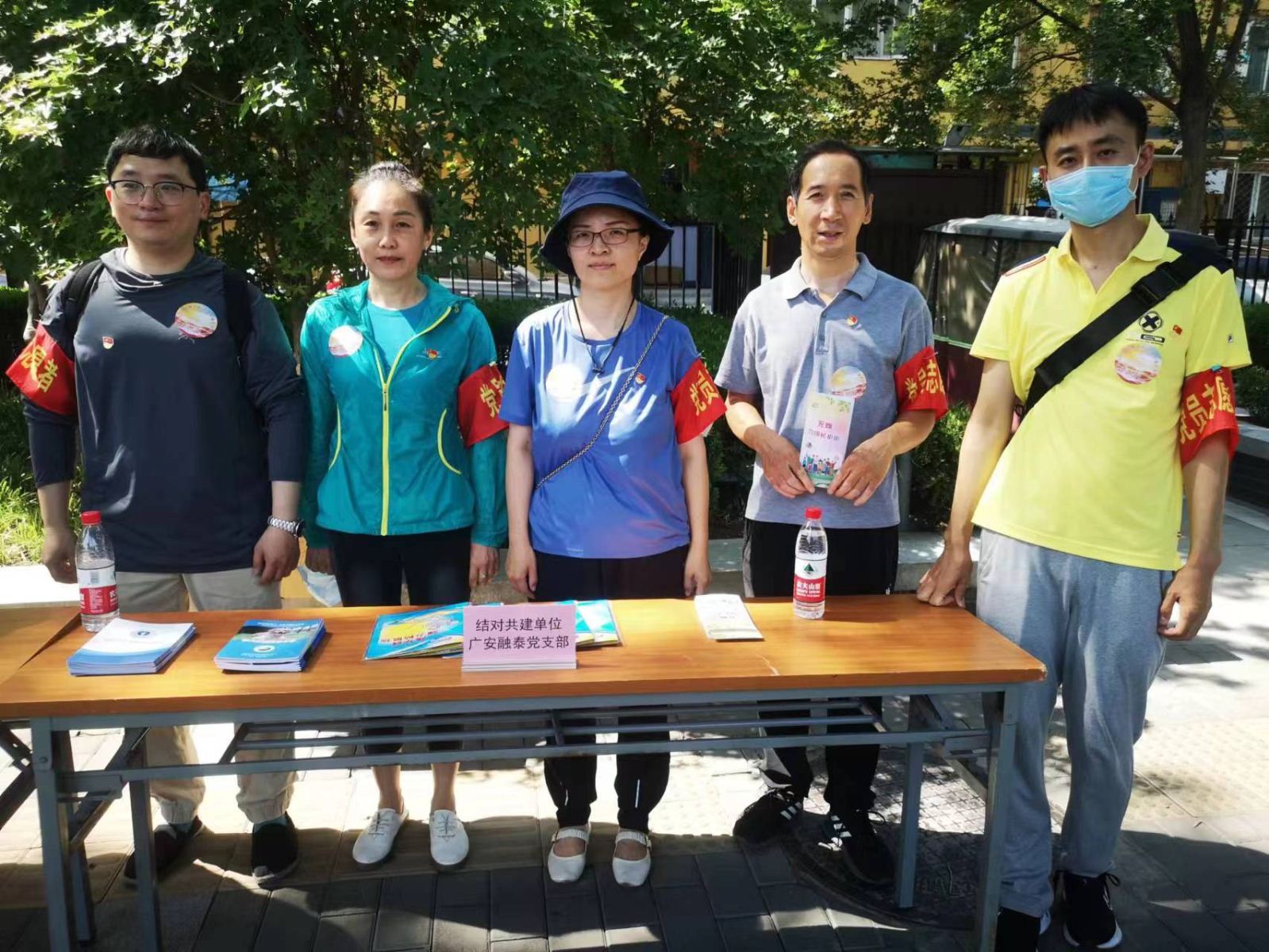 為慶祝建黨102周年,深入學習貫徹黨的二十大精神,引導在職黨員筑牢理想信念、錘煉黨性修養,提升服務為民意識,7月1日,廣安融泰公司黨支部組織全體在職黨員走進前門西河沿社區和百順社區參加喜迎“七一”系列主題活動。